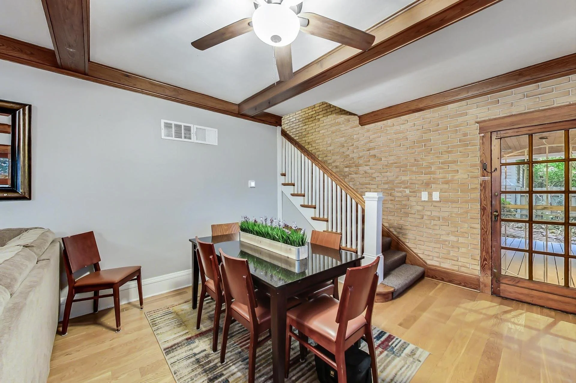 Bay’s Place sleeps up to 12 people throughout the 4 bedroom, 2.5 bath home. The home features a large front yard with a brick patio area featuring outdoor furniture and a fire pit. The home is perfect for family gatherings, vacations, small corporate gatherings, or an intimate small wedding.